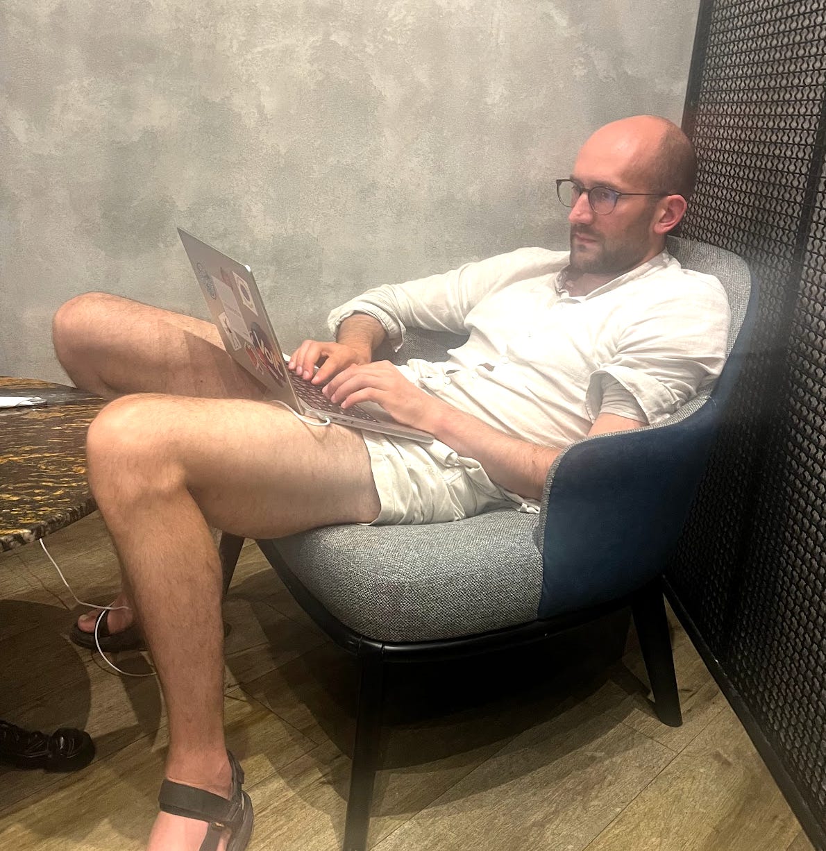 I fully agree with him. A lot of remote work setups are terrible. I am tall and I had to hustle quite a bit in most communities until I found a proper chair and table setup to somewhat protect my back. Most coworking areas are combined with social areas so people are constantly distracted. Working long is discouraged. And the evening program is often so tempting that we wake up maybe less focused than we could’ve been.